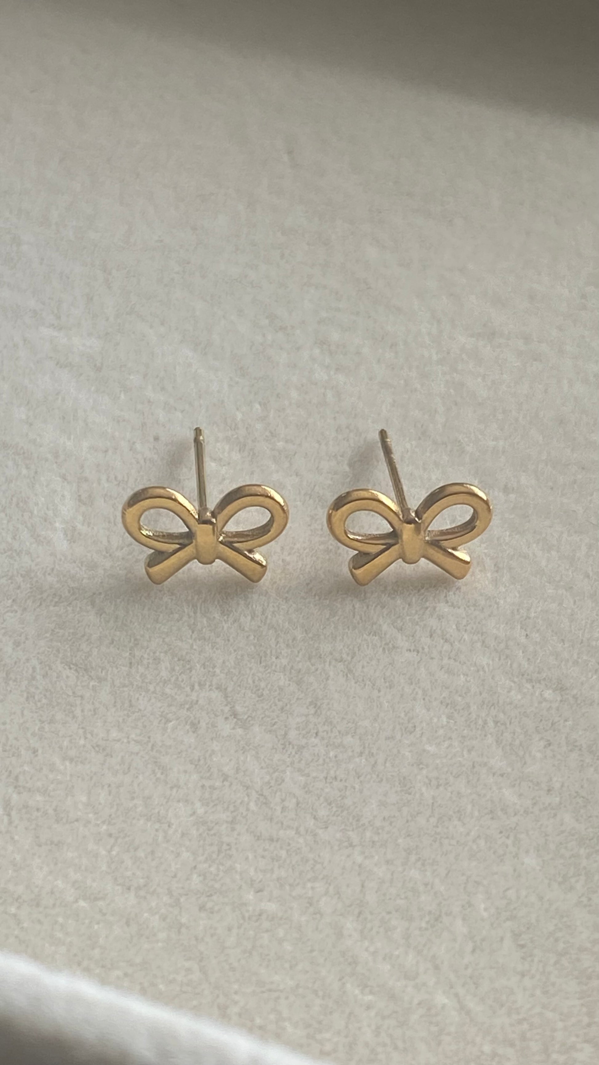 These Golden Bow 18k gold-plated earrings feature a delicate bow design — dainty, timeless, and perfect for stacking or wearing solo.